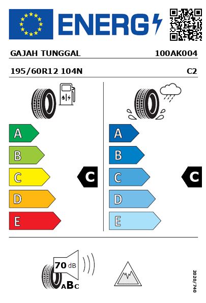 El neumático GAJAH TUNGGAL ST6000 195/60R12 104 N cuenta con una etiqueta de consumo de C, se trata de un consumo de combustible moderado