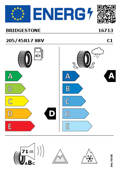 Este neumático para coche cuenta con un agarre sobre terreno mojado excelente, lo que lo convierte en un neumático idóneo para su uso con lluvia y condiciones meteorológicas adversas, así lo indica su calificación A.