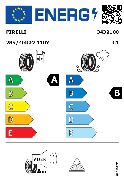 El neumático Pirelli cuenta con una anchura de 285 milímetros, un perfil de 40 mm y un diámetro de 22 pulgadas.
