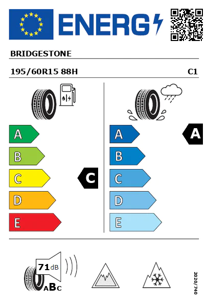 El neumático de coche BRIDGESTONE LM005 195/60R15 88 H cuenta con una etiqueta de consumo de C, se trata de un consumo de combustible moderado.